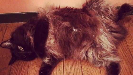 ポイントでリボンを付けた黒猫ちゃん♡